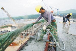12月27日,位于东方和昌江境内的华能海南发电股份有限公司戈枕水利枢纽工程正在加紧施工。目前,土坝已经基本完成,土建接近尾声,工程开始进入机电设备安装阶段,预计2009年8月第一台机组可发电。 本报记者 王凯 特约记者 曾高文 摄