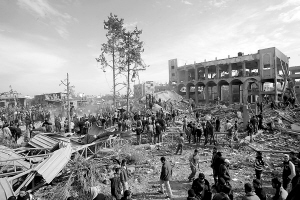 | ←12月27日,在加沙地带南部的拉法,巴勒斯坦人在一处遭以军战机空袭的地点查看。 新华社发 |