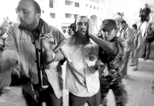| ↓一名受伤的巴勒斯坦人(中)接受救助。 新华社/路透 |