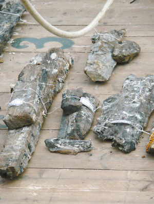 | 华光礁Ⅰ号出水船板。 |