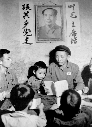 | 胡松和石屋大队的孩子正在学毛选。 |