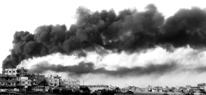 | 12月28日,加沙地带一处遭以军空袭的地点浓烟滚滚。 新华社/路透 |