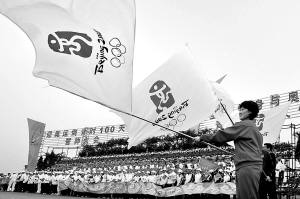 | ↑(2)“全民健身与奥运同行”活动在全国开展 2008年是“北京奥运会年”,全国各地都广泛开展了“全民健身与奥运同行”活动。图为青岛迎奥运倒计时100天誓师大会暨“全民健身与奥运同行”万人健步行活动在青岛奥林匹克帆船中心举行。 |