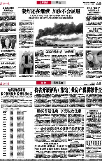 海南日报 世界新闻 005 2008-12-291 2008年12月29日 星期一