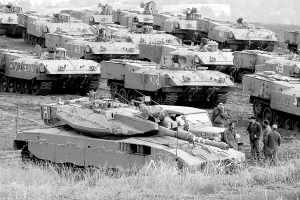 | 12月29日,以色列的坦克和装甲车在靠近加沙的边境地区集结。 新华社/法新 |