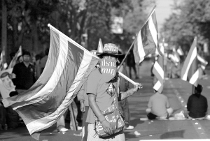 | 12月29日,在泰国首都曼谷国会大院附近,一名泰反政府民间政治组织反独裁民主联盟(反独联)的支持者参加集会。 新华社/路透 |
