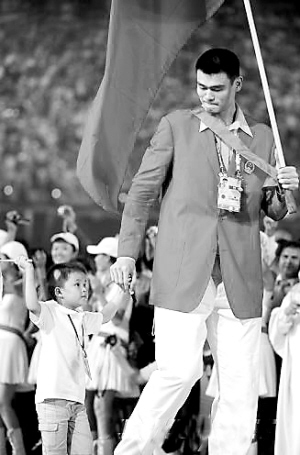 | ← 汶川花朵 小林浩站在姚明身边,一大一小,相映成趣。这是8月8日晚,北京奥运开幕式,来自汶川映秀镇鱼子溪小学二年级的林浩挥舞着手中的国旗,与中国代表团旗手姚明手牵手一起入场。“1000多个人,起码有800多人抱我,我就像火炬一样,被传来传去。”小林浩说。 |