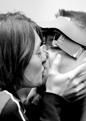 | ↑ 温馨之吻 四年前埃蒙斯在参加50米三姿比赛中,最后一枪打到别人靶位上,把金牌让给了贾占波,四年后埃蒙斯再次犯类似的错误,在最后一枪只要打出7.6环的成绩时,他却打出了4.4环,把金牌又让给了另一位中国选手邱健。埃蒙斯的夫人卡特琳娜目瞪口呆,而埃蒙斯神情沮丧,卡特琳娜赶紧从观众席上下来,安慰着埃蒙斯,此时的倒霉蛋,如同做错事的孩子一样,用可怜的表 |
