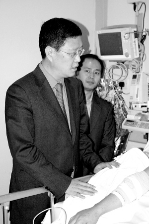 12月29日,中国政府特使、外交部副部长何亚非在询问伤员情况。 当日,正在巴基斯坦访问的中国政府特使、外交部副部长何亚非同巴内政部、外交部、首都发展局以及中国驻巴使馆官员等一同前往伊斯兰堡的希法国际医院,探望我在巴遭袭受伤的一名工程人员。 新华社记者 饶博 摄