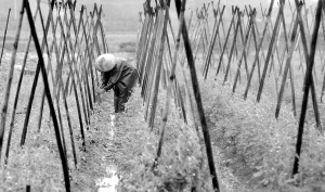 | 海口市灵山镇加乐村农民冒雨在管理自家的冬季瓜菜。 本报记者 李英挺 摄 |