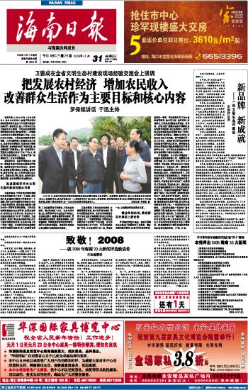 本报评出2008海南20大新闻