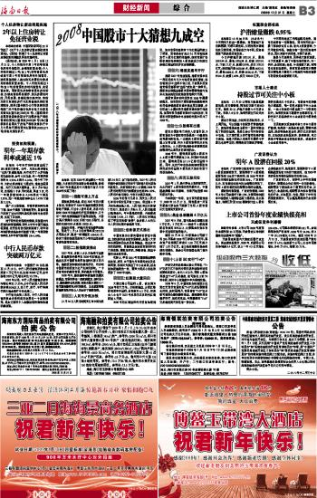 海南日报 财经新闻 011 2008-12-311 2008年12月31日 星期三