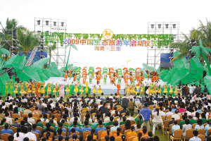 | 1月1日上午,2009中国生态旅游年启动仪式在三亚举行。图为启动仪式现场。 本报记者 程范淦 摄 |