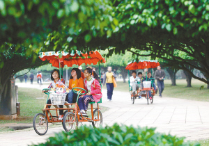 ← 1月1日,市民在海口市万绿园内 休闲游玩。 本报记者 宋国强 摄