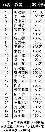 评点:2008年中国作家富豪榜揭晓后,引起众人喧哗。君不见,就连人民网都推出讨论专题,称之为改革开放30年的一个文化标志性事件。究竟是作家财富勾起大众的好奇心,还是人们对文学本身抱有幻想?抑或如知名学者叶匡政所言,这份榜单早就活在每一个与文学相关的人的头脑中,它已成为左右我们今天文学秩序的一种力量。