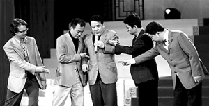 当天,语言类节目终审地点从五棵松的影视之家移师到了央视转播厅,现场观众人数比原来增加不少,可以检验每个节目的“笑果”。经过数小时的挨个过堂,据相关人士透露,11个节目基本上悉数过关。之前,与姜昆有关的三个作品《大拜年》、对口相声《我晕》、群口相声《新五官争功》有两个顺利过关,而有62个相声演员合作的“大合唱”《大拜年》,当天却没有能够通过审查。