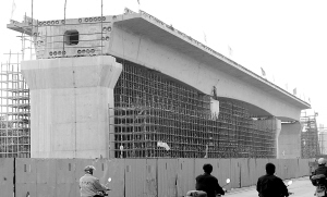 1月4日,工人们开始拆卸东环铁海口高架特大桥南海大道417———420标段现浇连续梁支架,标志东环铁路跨度最大的第一个现浇连续梁浇筑成功。 据介绍,东环铁路海口高架特大桥南海大道标段有多个十字路口,每个十字路口的大桥横跨梁厢都要现场浇筑,中铁17局的建设者经过两个多月的日夜连续浇筑,今天终于成功浇筑第一梁,各项技术指标达到设计要求。同时为以后浇筑该种梁厢取得了准确数据,目前南海大道7个十字路口的现场浇筑梁厢工作全面铺开。 本报记者 古月 摄