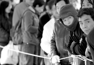 | ↓1月4日,春运气息渐浓,旅客在广州火车站广场排队检票进站。 |
