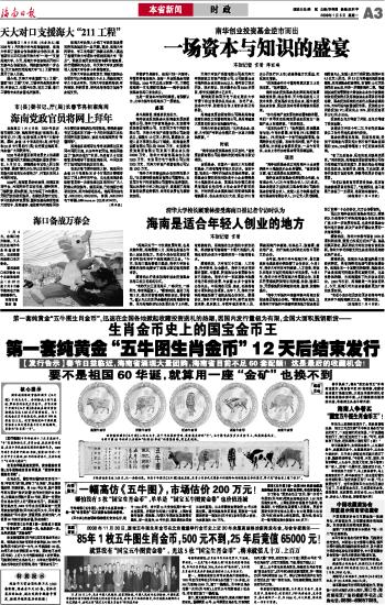 | 海南日报 时 政 003 2009-01-051 2009年01月05日 星期一 |