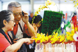 上图:争奇斗艳的兰花吸引众多参观者。 本报记者 程范淦 摄