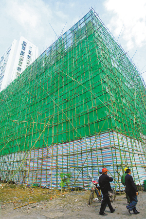 | 正在拆除的“半拉子”楼增加了安全防护。