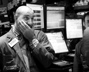 1月5日,一名股票交易员在美国纽约证券交易所内工作。由于投资者担心2009年企业盈利将继续下滑,5日纽约股市三大股指全线告跌。 新华社/路透