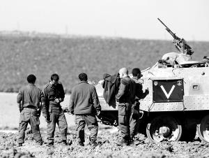 | 在加沙地带中部边境,以色列士兵在装甲车旁休息。 新华社发 |
