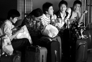 | ←1月6日下午,海口港码头候船室内,一些提前放假的内地学生等着坐船回家过年。