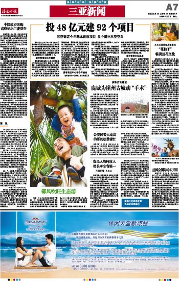 海南日报 三亚新闻 007 2009-01-071 2009年01月07日 星期三