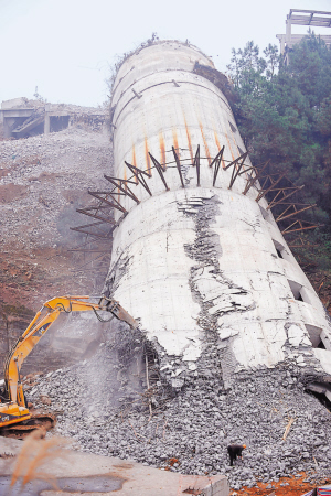 | “三峡明珠观光塔”废墟(1月7日摄)。