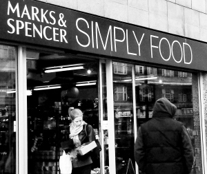 1月7日,行人从英国首都伦敦街头的一家玛莎食品店门前走过。英国著名的服装、食品和金融服务零售商玛莎百货集团当天公布2008年圣诞季销售情况,并宣布计划关闭国内的25家食品专卖店和2家综合商店,裁员逾千人。玛莎百货创办于1894年,目前在英国拥有600多家零售店,在海外拥有270多家。 新华社发