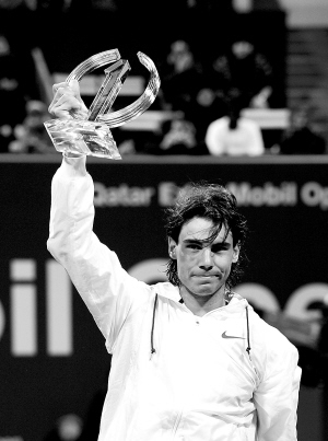 1月6日,在多哈举行的卡塔尔网球公开赛上,纳达尔获得2008年度世界排名第一的奖杯。 新华社发