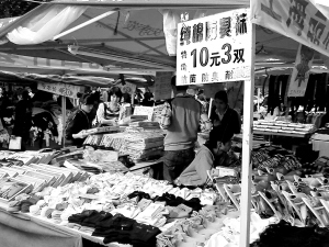 10元3双的“耐克”牌纯棉袜子、20元一件的“阿迪达斯”T恤、80元一双的“老人头”皮鞋,堂而皇之摆在一些大商场门口。业内人士向记者透露,这些商品根本就不是大商场销售的,而是销售商临时租用商场场地,利用人们对大商场的信任度推销“山寨货。”业内人士说,“耐克”“”、“阿迪达斯”、“老人头”等都是著名品牌,价格不可能低得如此离谱,正牌的“耐克”纯棉袜子最少也要二十几元一双。
