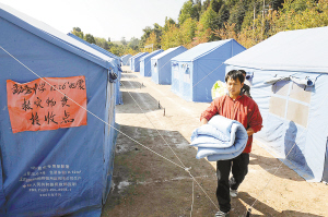 1月8日,瑞丽市勐秀乡中学老师刘高峰把棉被送到老师帐篷内。 12月26日,云南省德宏傣族景颇族自治州瑞丽市分别发生4.9级、4.0级地震,其中勐秀乡勐秀中学和中心小学受损较为严重。为保障孩子们安心上学,学校把最好的房子让给学生做宿舍,老师们一直住在临时帐篷内。 新华社发