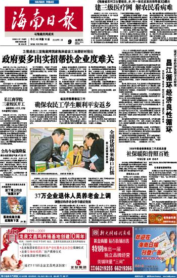 海南日报 头版 001 2009-01-091 2009年01月09日 星期五