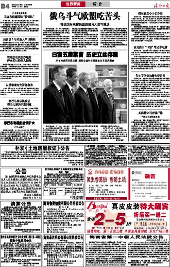 海南日报 世界新闻 012 2009-01-091 2009年01月09日 星期五