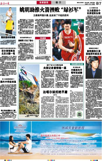 海南日报 体育新闻 015 2009-01-091 2009年01月09日 星期五