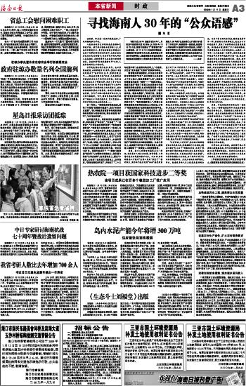 海南日报 本省新闻时 政 003 2009-01-111 2009年01月11日 星期日