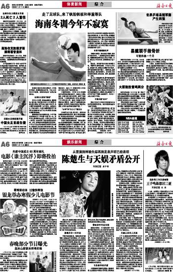海南日报 体育新闻 综 合 006 2009-01-111 2009年01月11日 星期日
