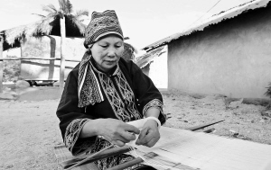 | 乐东千家镇永益村民容亚美,是黎族传统纺染织绣技艺传承人,黎锦是黎族文化的代表之一。 本报记者 张杰 摄 |