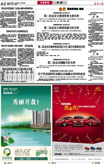 海南日报 时 政 002 2009-01-121 2009年01月12日 星期一