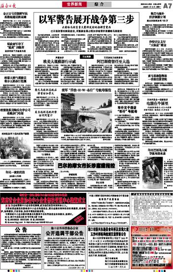 海南日报 世界新闻 007 2009-01-121 2009年01月12日 星期一