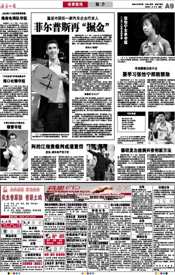 海南日报 体育新闻 009 2009-01-121 2009年01月12日 星期一