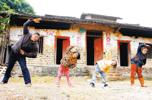 1月12日,是广西融水县全县小学2008年秋季学期的最后一天上课时间,只有4名师生的融水镇东华村泗柳屯教学点进入了期考最后冲刺。泗柳屯是一个有着60多户人家的村寨,三年级以上的孩子集中到东华村完小上学。由于不少孩子跟随务工的父母外出,近年在屯里上学的孩子只剩下3名。 新华社发