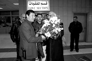 | 叙利亚足协主席穆罕默德(右)亲自迎接国足。小新发 |