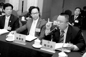 | ↑1月12日,参加政协海南省五届二次会议的委员们分组对政府工作报告进行讨论。 本报记者 王凯 摄 |