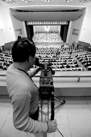 ↑南海网直播海南省第四届人民代表大会第二次会议开幕盛况。 本报记者 宋国强 摄