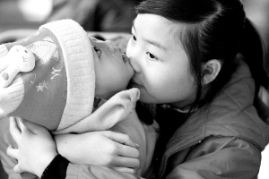 1月11日海口降温,在海口汽车南站,一个年轻女子把婴儿搂在怀里。这天是2009年春运第一天,海口汽车南站秩序井然,客流量正常。工作人员为候车旅客送开水、报刊等免费服务,旅客在温馨、祥和气氛中,安心候车。 本报记者 古月 摄 关注 春运