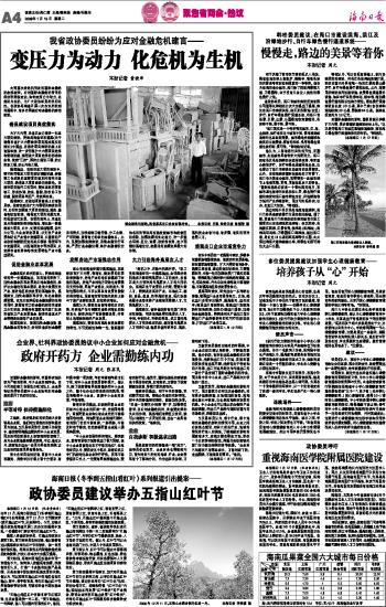 海南日报 聚焦省两会·热议 004 2009-01-131 2009年01月13日 星期二