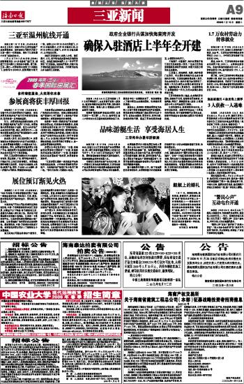 海南日报 三亚新闻 009 2009-01-131 2009年01月13日 星期二